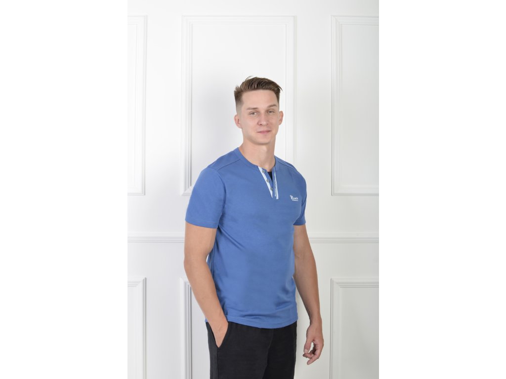 Pánske modré tričko s malým nápisom a krátkym rukávom 21672