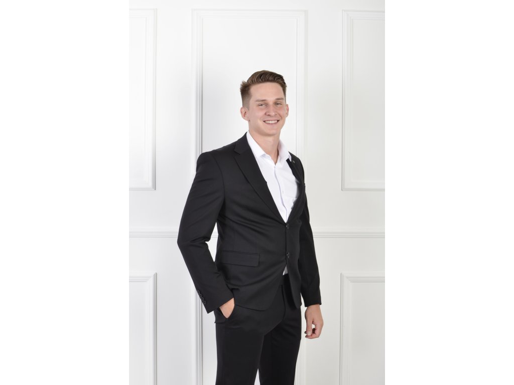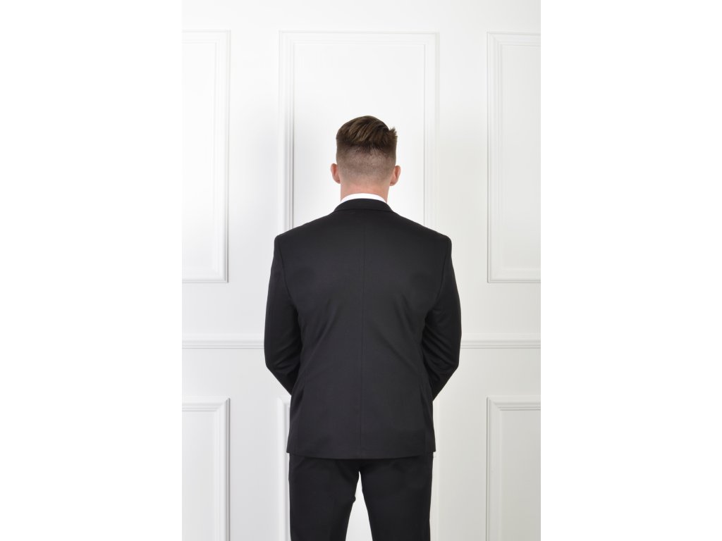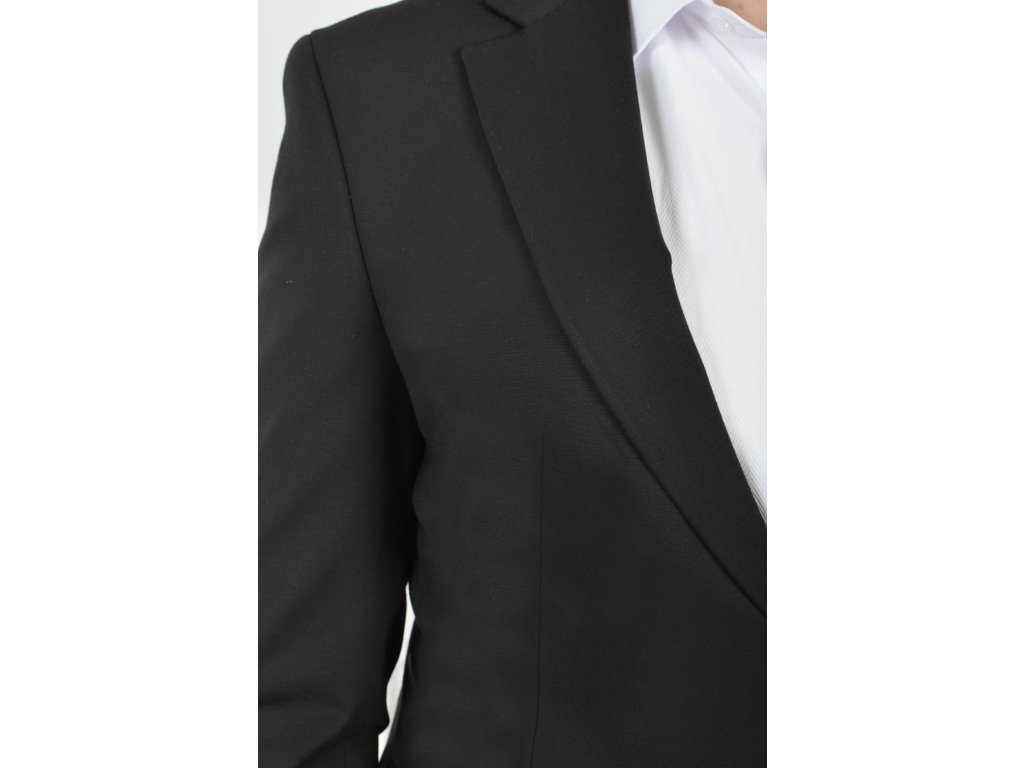 Pánske hladké oblekové sako čiernej  farby. Sako má vrecká, rozparky na zadnej strane a zapínanie na dva gombíky.  Pár ku kódu 22217.