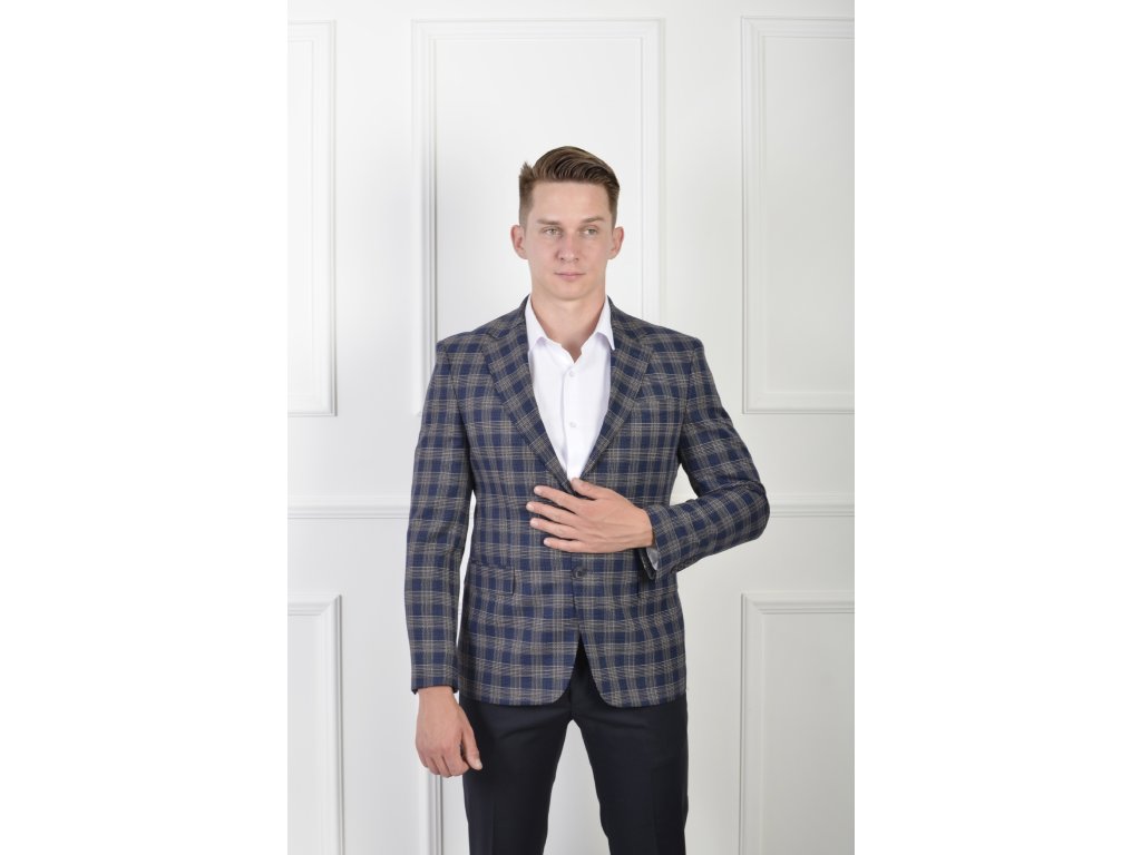 Pánske oblekové kárované sako modro-béžovej farby 21703