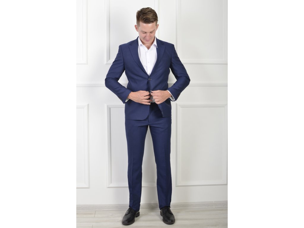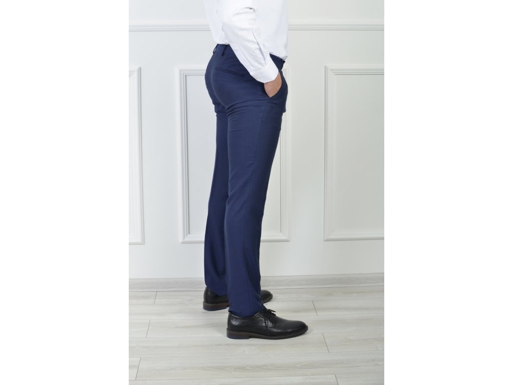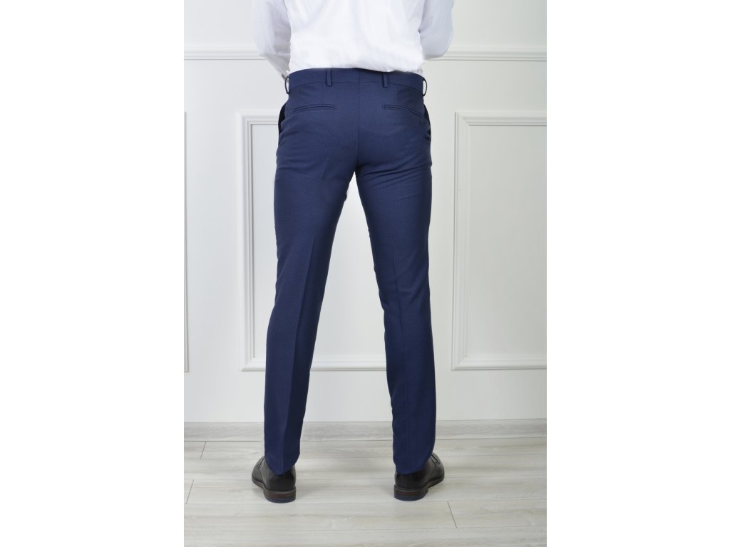 Pánske oblekové nohavice modrej farby s čiernym vzorom 21698