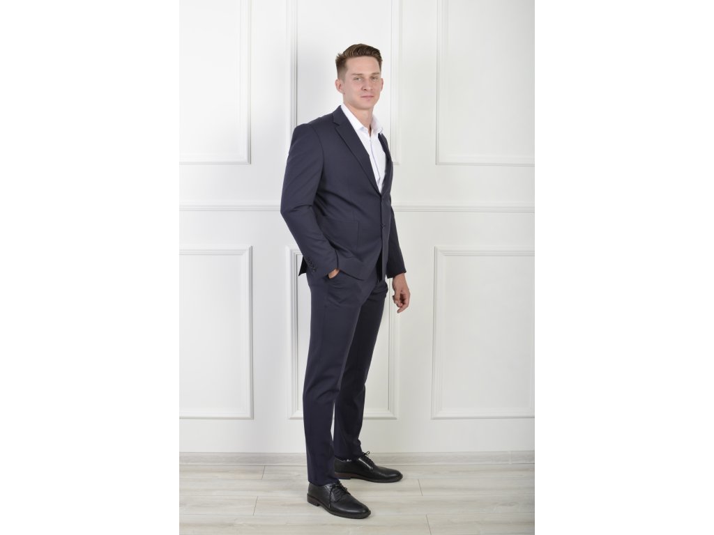 Pánske hladké oblekové sako tmavomodrej farby. Sako má vrecká, rozparky na zadnej strane a zapínanie na dva gombíky. Pár ku kódu 22213.