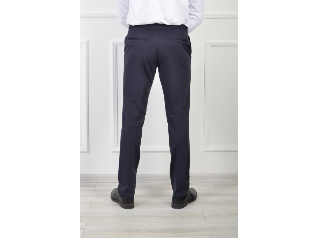 Pánske hladké oblekové nohavice tmavomodrej farby. Nohavice majú vrecká, pútka na opasok a zapínanie na zips a gombík. Pár ku kódu 22212.