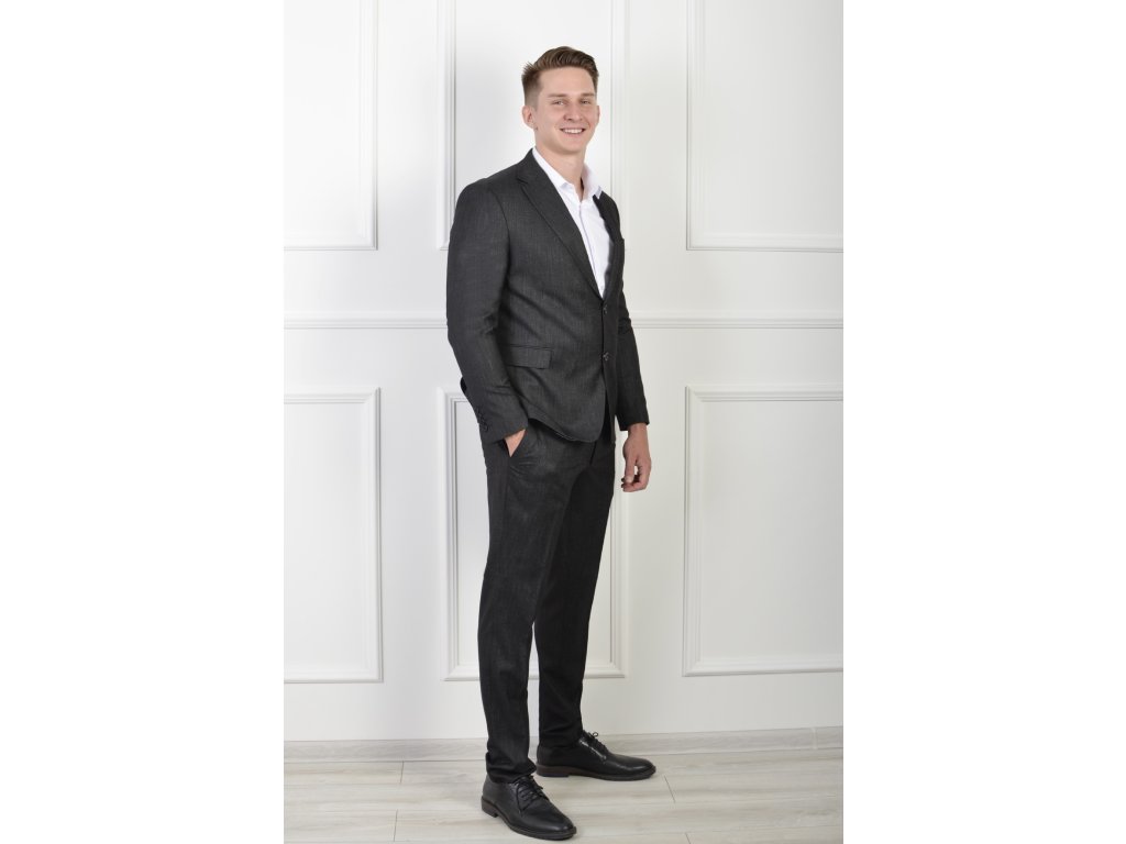Pánske oblekové sako čiernej farby s jemnou štruktúrou 21705