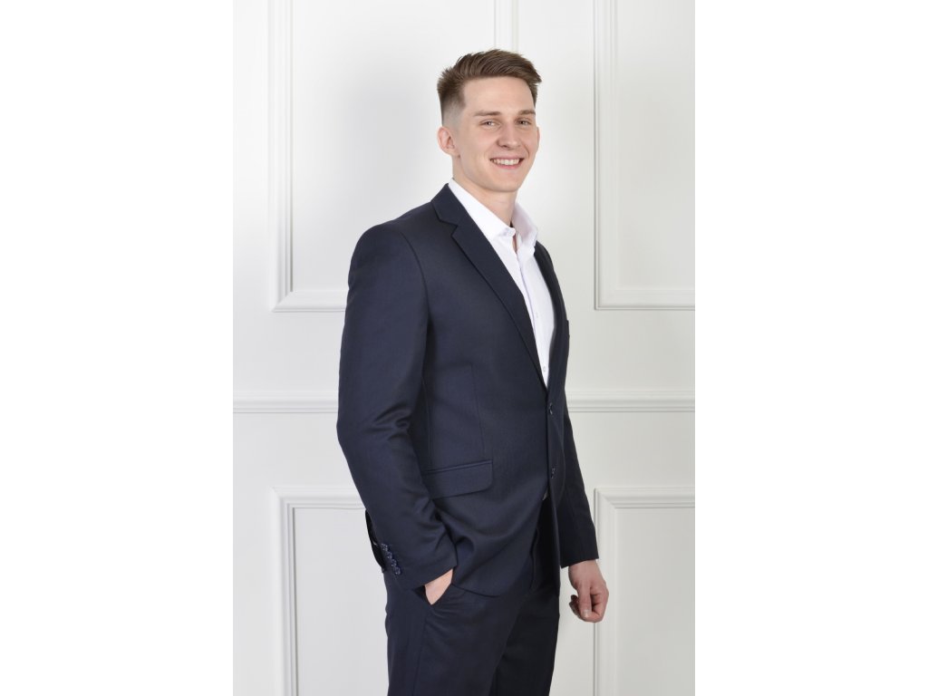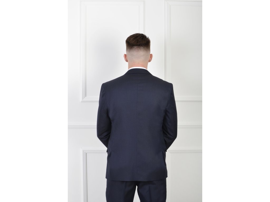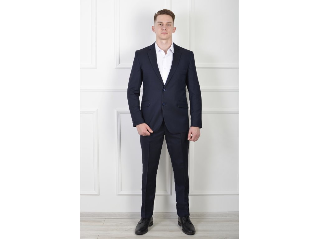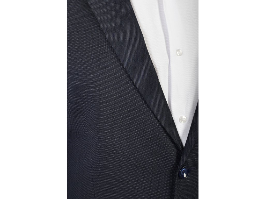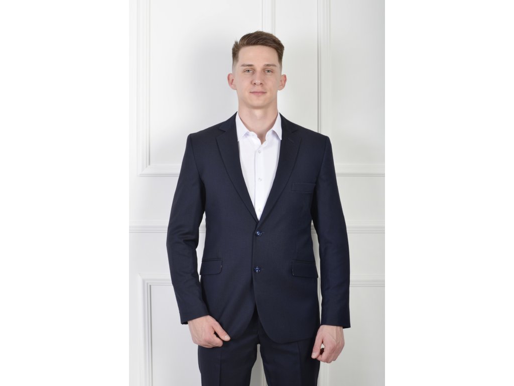 Pánske sako tmavomodrej farby s nenápadným vzorom kociek . Sako má vrecká, rozparky na zadnej strane a zapínanie na dva gombíky. Pár ku kódu 16870.