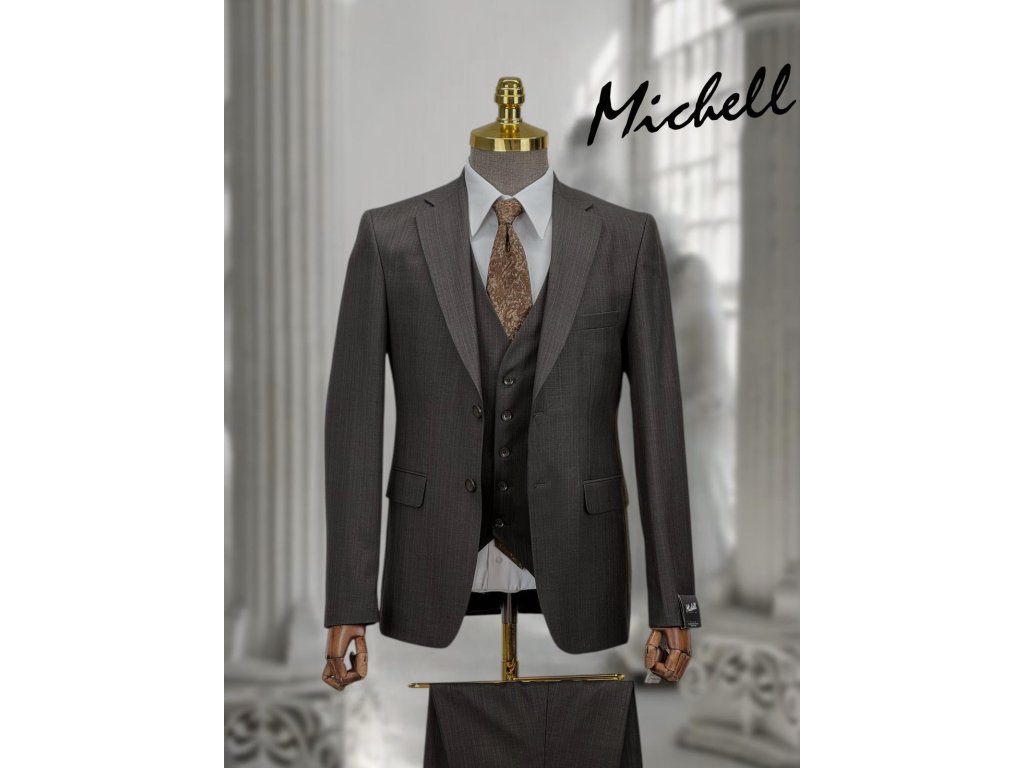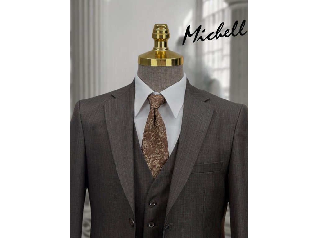Pánsky elegantný tmavohnedý 3-dielny oblek 22793